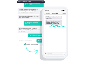 Transform the way you connect with today’s car buyers by using the most comprehensive automotive messaging solution on the market. With ActivEngage, your dealership can have conversations across all your digital channels that increase engagement, leads, appointments and sales.