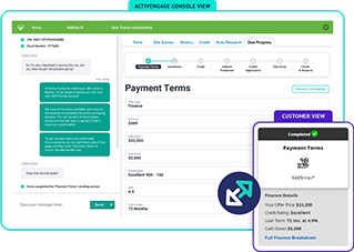 Add messaging to your digital retailing tool for a guided online car buying experience! Our professionally-trained team (or yours) can help move consumers down-funnel by answering questions in real-time and building buyer confidence that increases completion.