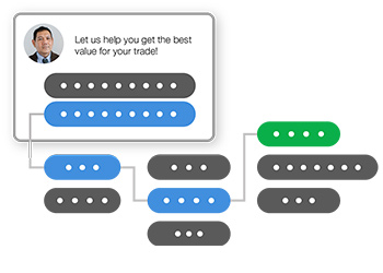 Using natural language responses, move clients through critical steps of the car-buying journey, including scheduling a test drive, valuing a trade-in, pre-qualifying for credit, and getting an e-price.