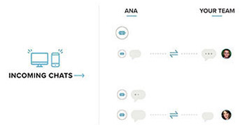 Conversations℠ comes standard with a friendly A.I. chatbot that can greet shoppers, answer questions, and capture leads with natural language. All new chats go through Ana first, and she can complete many of them herself start to finish to save your team tons of time. Whenever she’s unsure how to answer a customer, she politely and instantly transfers them to the most relevant person on your team.