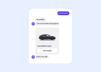 Our powerful conversational tools have everything you need, and more. With ChatSmart, customers can connect with your dealership 24/7, 365. ChatSmart enables you to: