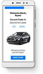 Accurate trade-in values are key to earning trust early—and Dealer eProcess makes it effortless. Our Trade-In Tool delivers real-time appraisals using data from trusted sources like KBB and NADA Guides, giving shoppers fast, reliable valuations without ever leaving your site. It’s a streamlined experience that keeps INFINITI buyers engaged and informed while giving your team more qualified, trade-in-ready leads from the start. Fewer drop-offs. Smarter deals. Stronger outcomes.