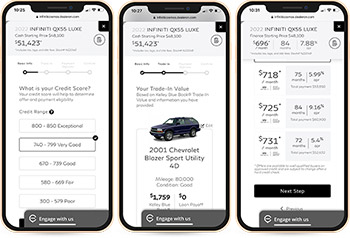 Apex bridges the gap between online and off-line shopping by guiding customers through an easy trade valuation process, smart incentive selection, F&I/ accessory menu, live credit pulls/decisioning and document uploads - saving you time and money while creating a seamless consumer experience for your customers.