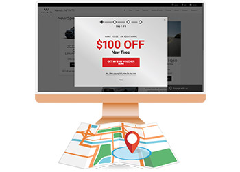 Lead Driver is a highly effective, non-intrusive way to target potential customers on both mobile and desktop. It’s a popup, not an ad, so it won’t be blocked by ad-blockers. You can customize the offer to meet your needs. Whether you want to offer $500 off of new vehicles, provide a special discount for service orders, or provide nearly any kind of offer to entice your site visitors to submit a lead.
