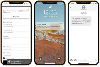 Entice your customers to send leads and re-engage in meaningful ways across your website. Shoppers can quickly share vehicles via text with friends or family, download coupons or loyalty offers to their Google or Apple Wallet and request a price drop alert when there is a change in the vehicle’s price.