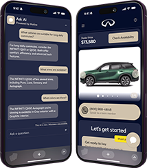 Search, sort, filter & find. With conversational search, instant filtering, infinite scrolling, and more—all tied together with a seamless interface—Motive delivers an industry-leading vehicle discovery experience that enables your customers to find the INFINITI that you know they’ll love.